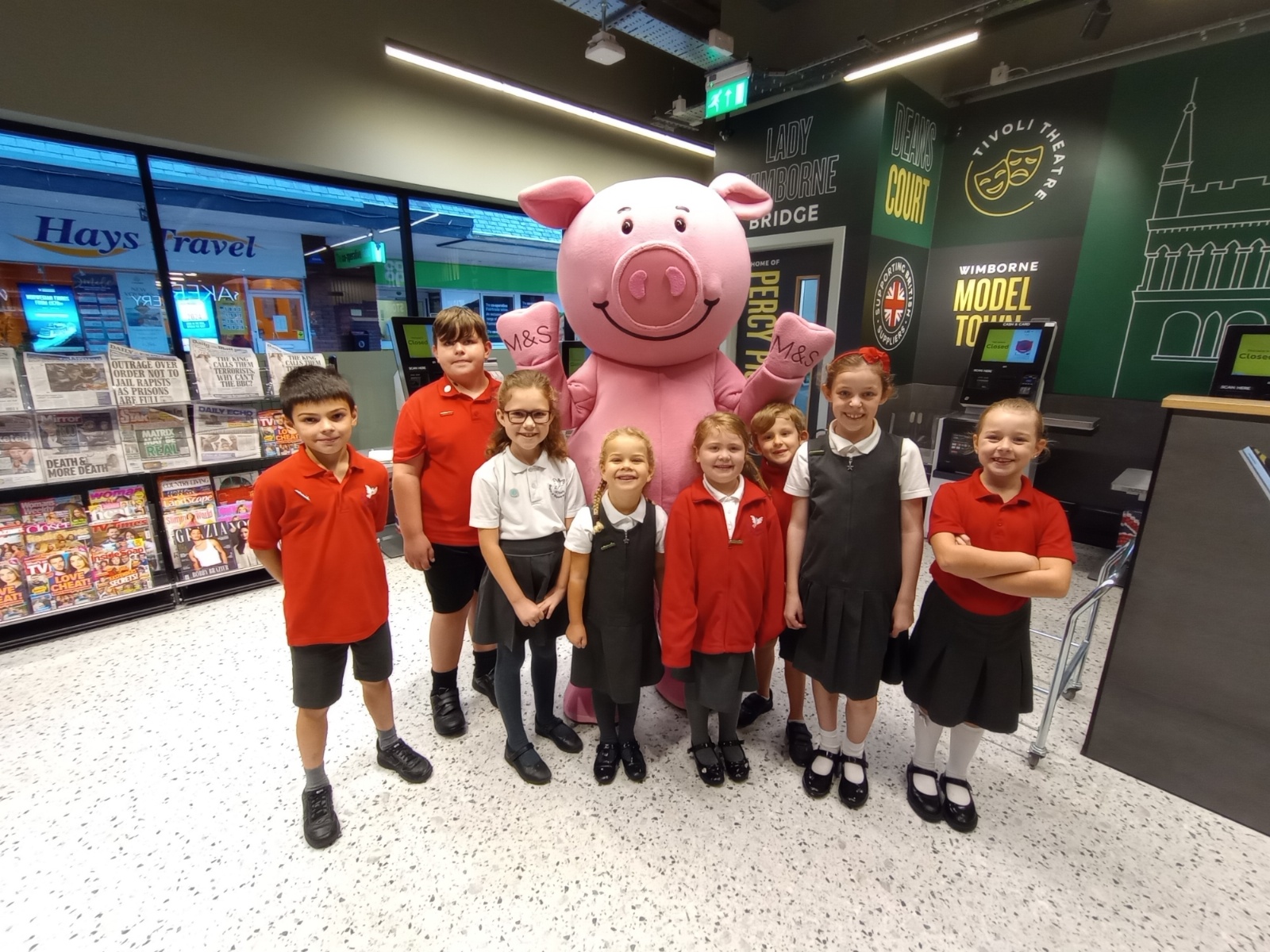 The School Council from St John's First School officially opened the new M & S Food Store in Wimborne. They had a tour of the store before any customers arrived and they met Percy Pig!